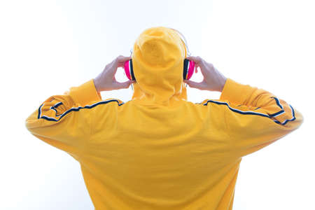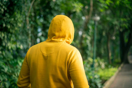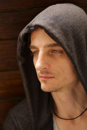 Man in Hood. Boy in a hooded sweatshirt. Male portrait