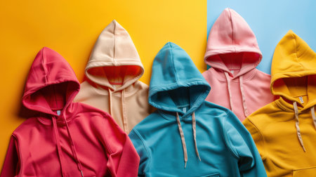 Colorful Comfort: Hoodies Spread on Vibrant Background
