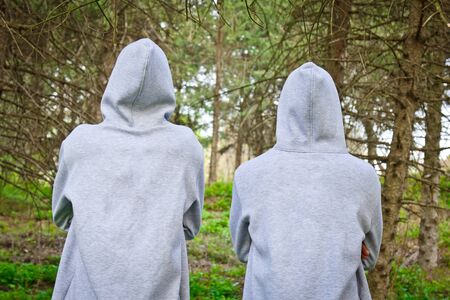 An AI-generated illustration of Two teenage friends standing in a forest to enjoy their friendship in a carefree moment