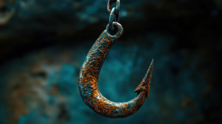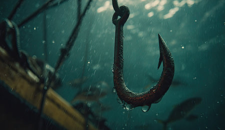 Underwater allure: A fishhook in the sea, capturing the essence of angling in the marine world. Dive into the adventure of oceanic exploration