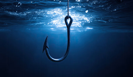 Fishing hook with an email icon, emphasizing the risks of phishing scams and fraudulent messages