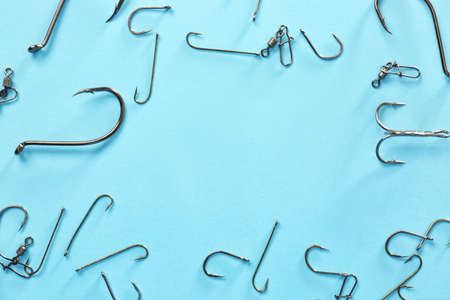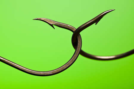 Sharp fish hooks photographed closeup. Sharpened the hook will not give a chance to fish to escape from the fisherman.
