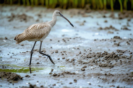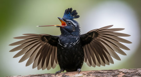 a bird stands on a dock over water, showcasing attention to fur and feathers texture. the comical choreography of this national geographic photo captures quirky character designs against the backdrop of the australian landscape. the black and azure colors add depth, while the afro-caribbean influence adds a unique touch to the scene. ai generated