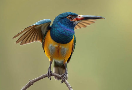 Olive-backed sunbird (Cinnyris jugularis) on a flower