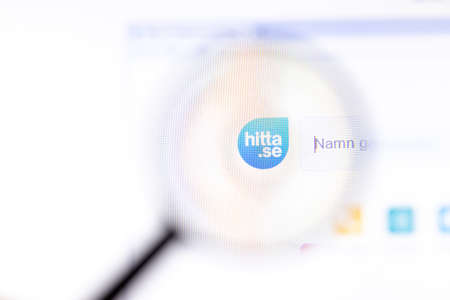 Los Angeles, California, USA - 18.02.2020: Hitta website page with close up logo. Hitta.se site icon on screen, Illustrative Editorial.