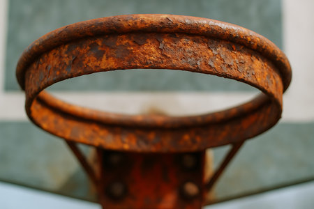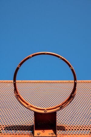 Close up of rusty iron basketball hoop. Selective focus with shallow depth of field