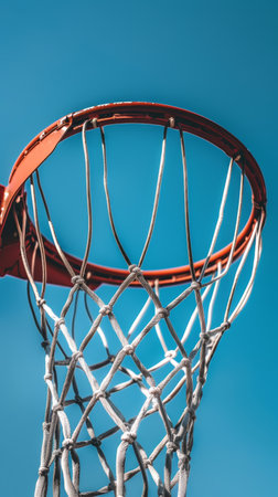 This close-up image showcases a basketball hoop and net against a dark background, perfect for sports enthusiasts and fitness content or promotional material.