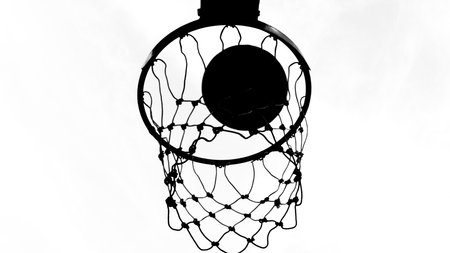 Black and white silhouette of a basketball hoop with a ball, symbolizing outdoor sports and recreation.
