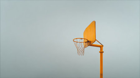 A vibrant yellow basketball hoop stands tall against a muted gray backdrop, symbolizing urban athletic culture and the thrill of the sport in a minimalist style.