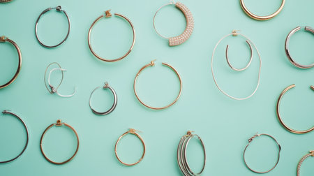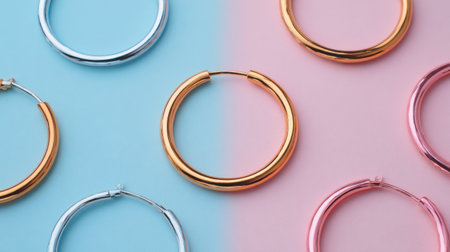 A stunning arrangement of hoop earrings in silver, gold, and rose gold showcased against a soft pastel background, perfect for fashion and jewelry promotions.