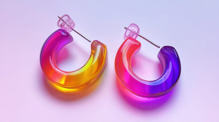 Eye-catching colorful transparent hoop earrings showcasing a stunning gradient effect, perfect for adding flair to any outfit. Ideal for fashion enthusiasts.