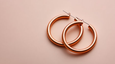 Rose gold hoops placed diagonally on pale pastel background with elegant empty space