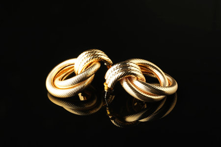 Beautiful bijouterie. Stylish earrings on black background