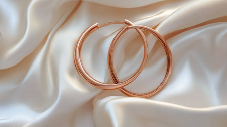 Delicate rose gold hoop earrings displayed on plush satin fabric create an elegant composition highlighting luxury and style, perfect for fashion-focused audiences.