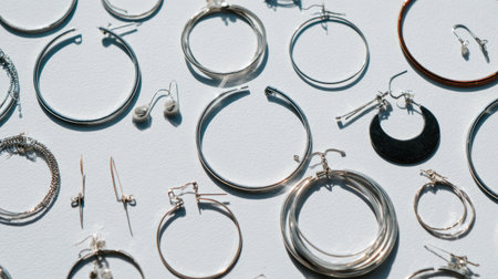 A captivating arrangement of assorted earrings including hoops, studs, and unique designs on a clean white background, perfect for fashion and jewelry promotion.