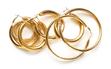 A pair of elegant gold hoop earrings showcased against a clean white background, embodying fashion and refined beauty. Perfect for stylish accessories.