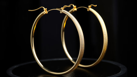 This image features a pair of elegant gold hoop earrings, beautifully illuminated against a soft background, highlighting their luxurious design and shine.