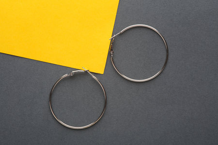 Silver ring earrings on a gray yellow background