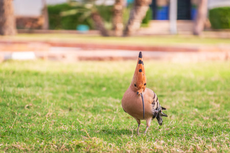 Hoopoe on green grass under sunlight in Egypt
