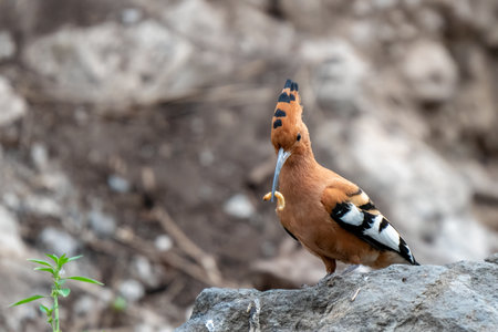 Beautiful eurasian hoopoe Upupa epops sitting on a rock.