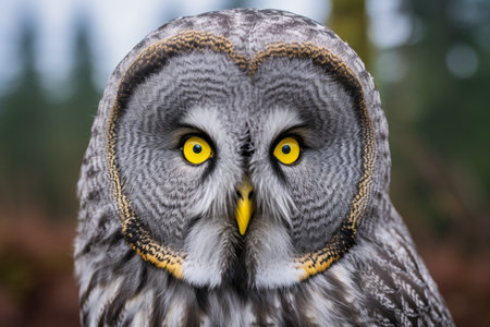 Majestic great gray owl portrait neon eyes representing freedom and nature mystery
