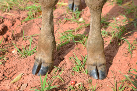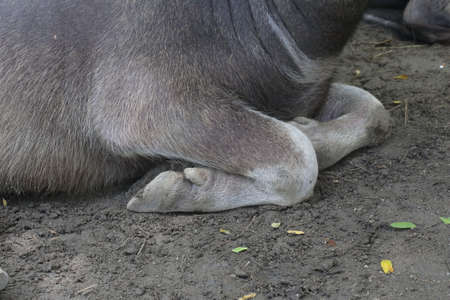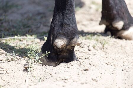 Paws of a cloven-hoofed animal on the ground in the zoo .