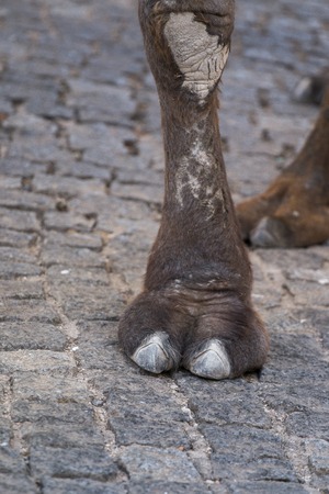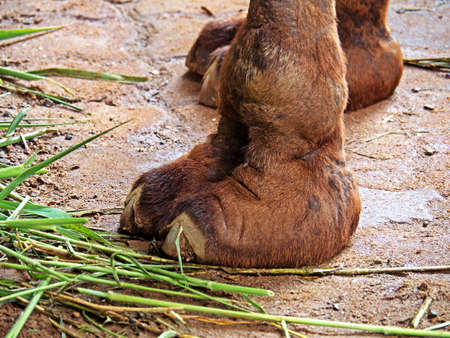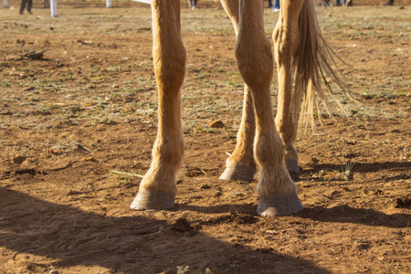 Camel's hairy legs and textured feet are showcased in the arid landscape, creating a unique and earthy image perfect for desert-themed projects.