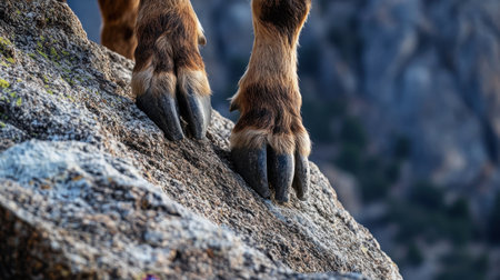 A close view of a male Iberian ibexs powerful hooves gripping a narrow rocky ledge in the Sierra de Gredos.