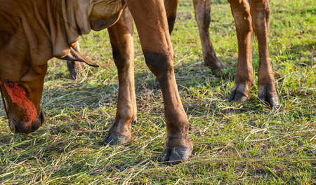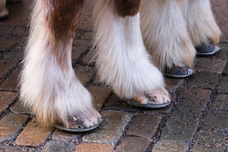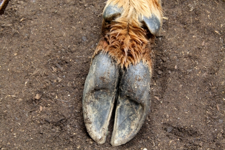 Brown Horse Hooves covered by hair during shearing. Farm Acttivities Concept