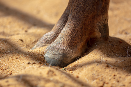The hooves of unshod horses that walk on a warm Sunny day on loose sand.