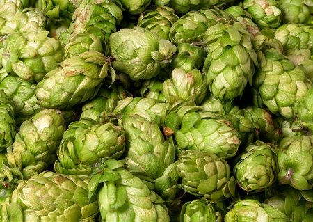 Close-up of freshly harvested hops from a local farm, highlighting their texture and vibrant green color