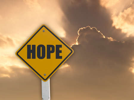 Hope word on sunset sky background - vintage filter and sun flare effect