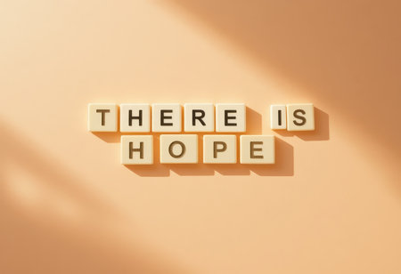 This image features a heartfelt message spelled out with letter blocks, emphasizing hope and positivity. The soft peach background adds warmth and tranquility to the inspirational theme.