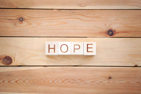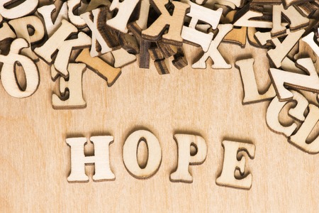 The word hope made of wooden letters
