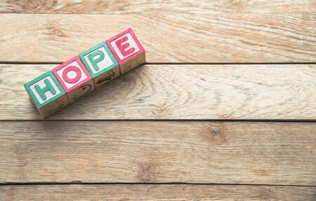 Wooden block word is HOPE on wooden background