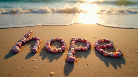 Happy New Year 2020 is coming concept sandy tropical ocean beach lettering nature background