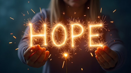 Hands holding glowing light, symbolizing hope, healing, faith, inspiration, spiritual energy, new beginning, miracle, inner strength and positive transformation from darkness to light.
