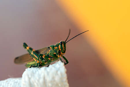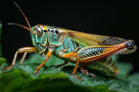 This high-resolution image features a colorful grasshopper, showcasing intricate details and vibrant colors. Perfect for nature enthusiasts and educational purposes.