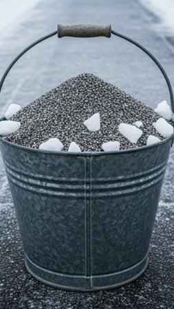 Construction bucket of fine sand for repair.