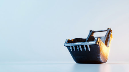 A close-up shot of a black toolbox with a handle, set against a light blue backdrop. The toolbox is positioned on the right side of the frame.