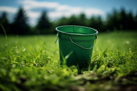 Natures Touch: Capturing Serenity Through a Bucket on the Grass --ar 3:2