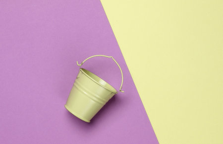 Empty mini bucket on colored pastel background. Minimalism. Trend color concept. Top view