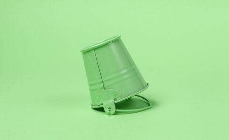 Inverted mini bucket on green pastel background close-up