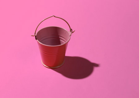 Empty mini pink bucket on pink background. Studio shot with shadow