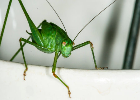Grasshopper on an electrical box at Perdana Botanical Garden, Kuala Lumpur, Malaysia.