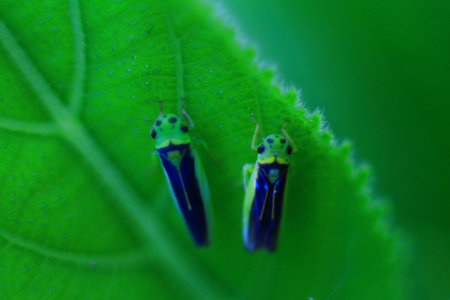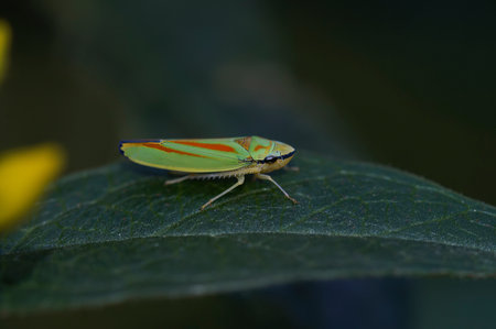 Close up shot of beautiful colorful leaf hopper