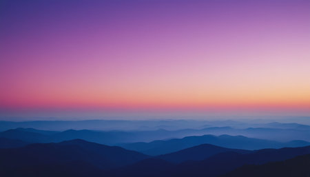 A breathtaking view of a mountain landscape at dusk, showcasing soft hues and gentle mist, illustrating the peacefulness of nature and the beauty of the horizon.