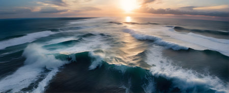 Evening Serenity, Aerial View of Blue Ocean Waves