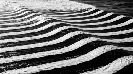 Ocean showing abstract black and white ocean waves with striking horizontal white stripes of foam and dark water...