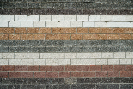Multicolored striped creatively laid brick wall texture. Slightly dusted and worn.